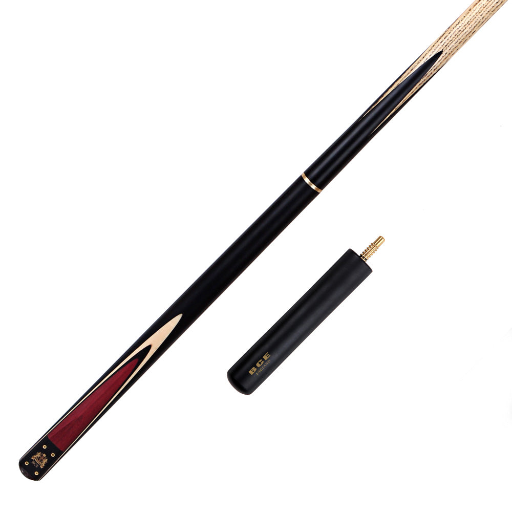 BCE 3 Piece Heritage Snooker Cue - 3/4 Cut Cue - Layered Ebonised Black Wood Butt - 9.5mm Tip - 145cm - Black/Natural/Purple