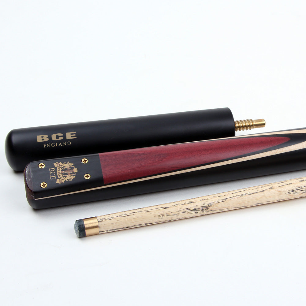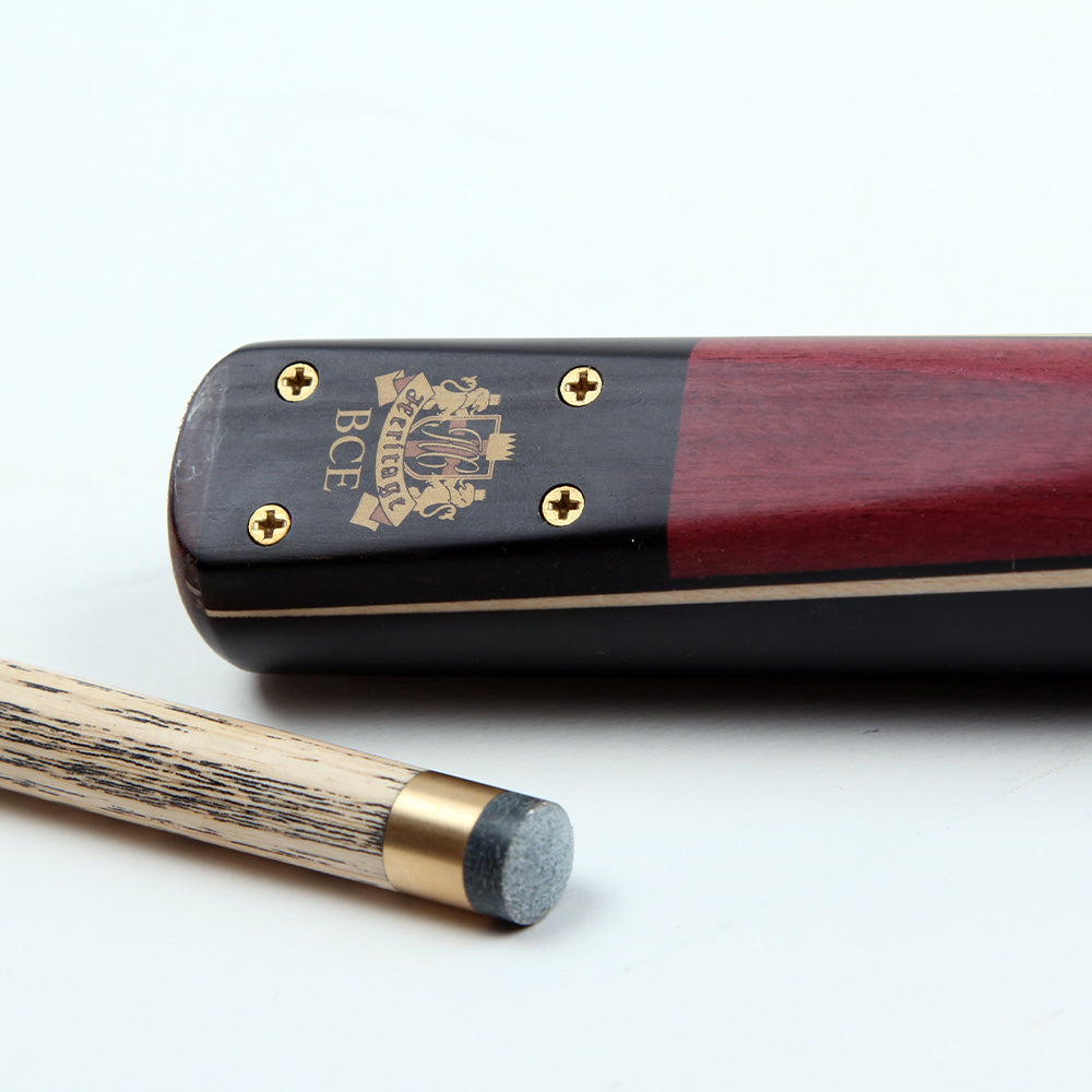BCE Heritage Series Cues - Including high quality hand spliced Layered Ebonised Black Wood butt section and beautiful wood splicing and veneers. Complete with matching 6” Mini Butt and matching BCE Deluxe Cue Case.