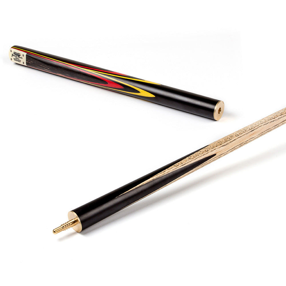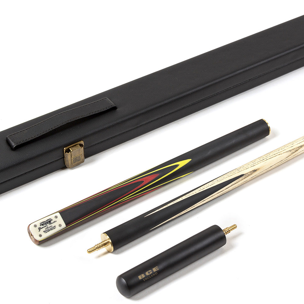 BCE 3 Piece Grand Master Snooker Cue - 3/4 Cut Cue - Layered Ebonised Black Wood Butt - 9.5mm Tip - 145cm - Black/Red/ Yellow