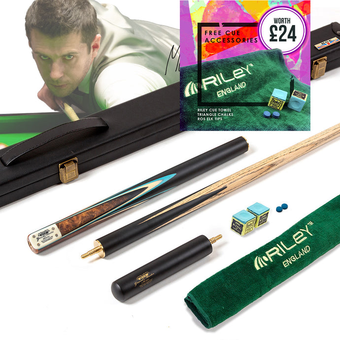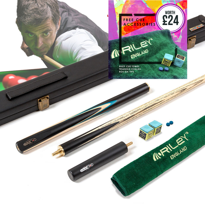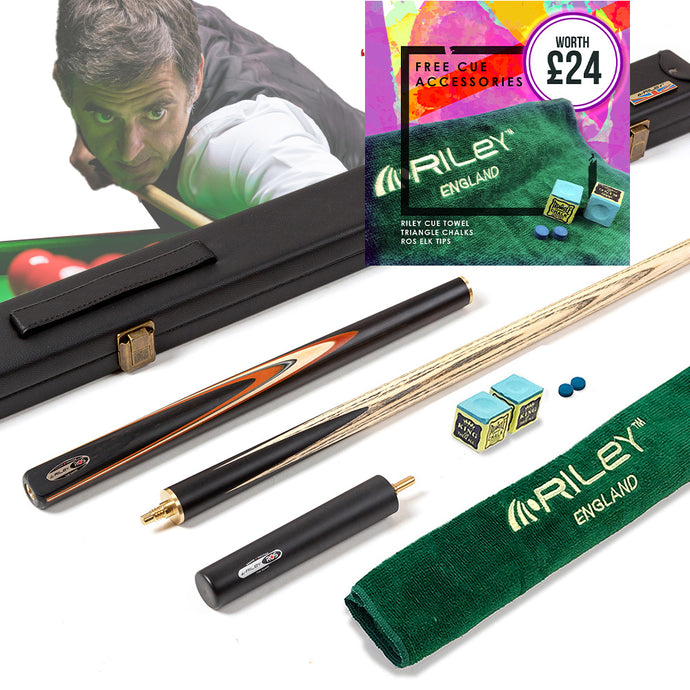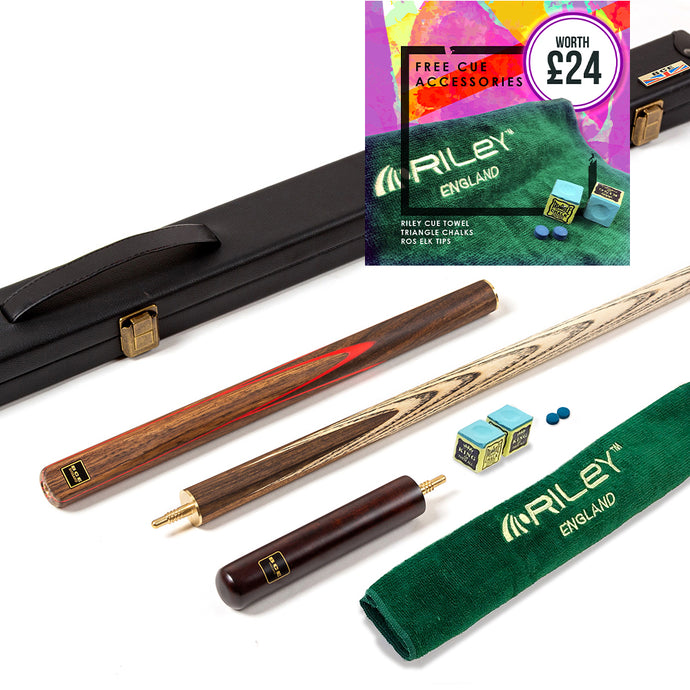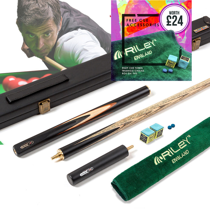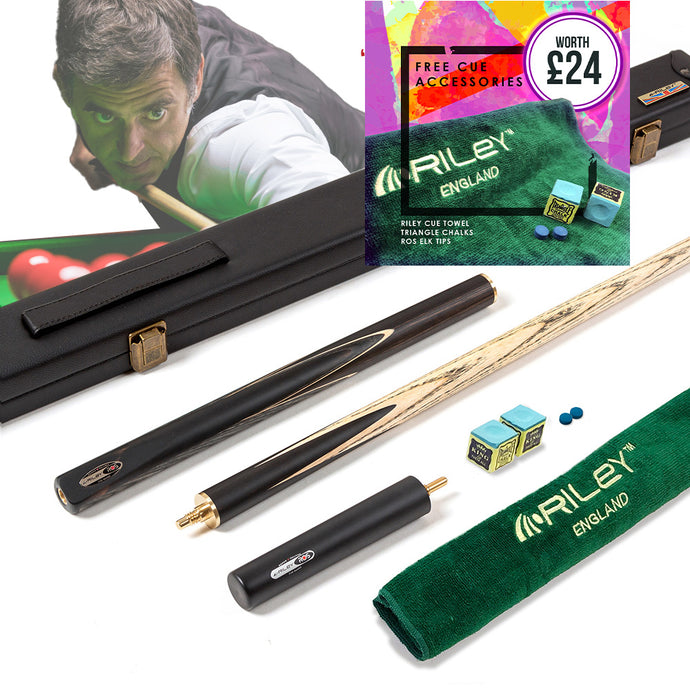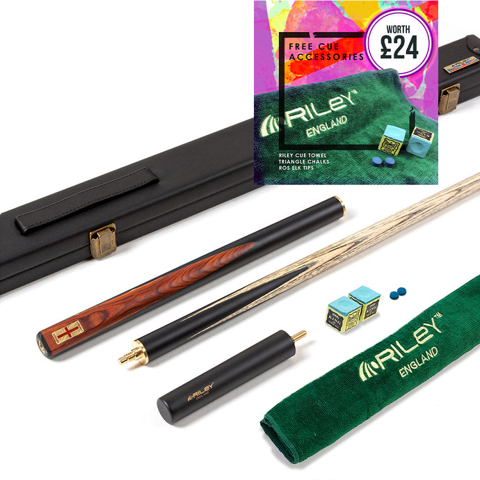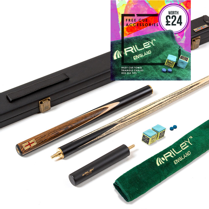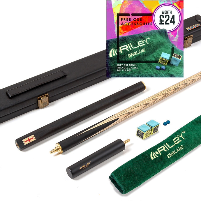 Riley Elegance - 1 Piece Snooker Cue and Hard Case - 1 Piece Cue - Ebony Butt- 9.5mm Laminated Tip - 145cm - Black/ Natural Golden Sandal 360˚ Splicing