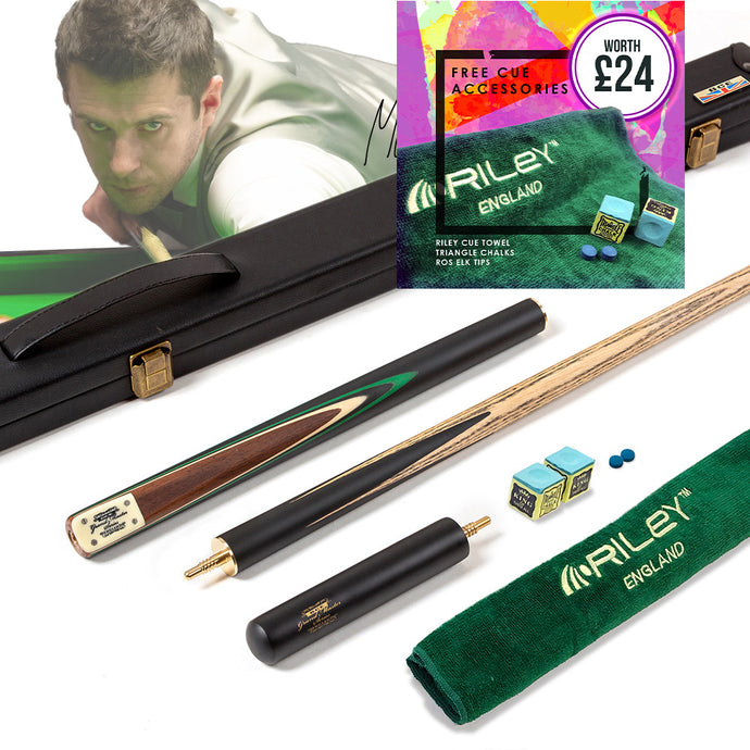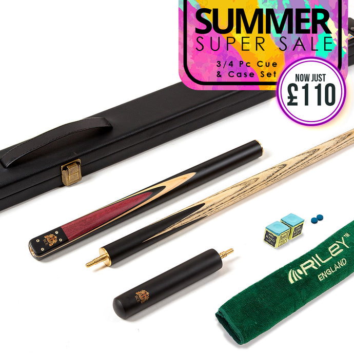 BCE 3 Piece Grand Master Snooker Cue and Hard Case 3/4 Cut- Layered Ebonised Black Wood Butt - 9.5mm Tip - 145cm - Black/Natural/ Green