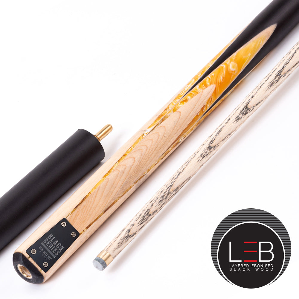 BCE Black Series - Mark Selby - 3 Piece Snooker Cue - 3/4 Cut - Layered Ebonised Black Wood Butt - 9.5mm Tip - 145cm - Black/ Yellow and White Marbleised Resin / Natural Wood