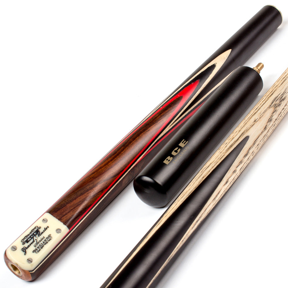 The BCE Grand Master snooker and pool cues have been designed for the player that wants more. Finest North American Ash shaft with the distinctive feathering is combined with a hand spliced, Layered Ebonised Black Wood butt. Genuine veneers and exotic wood splices and a Pro tip mean this a cue that snooker and pool players will be proud to own.