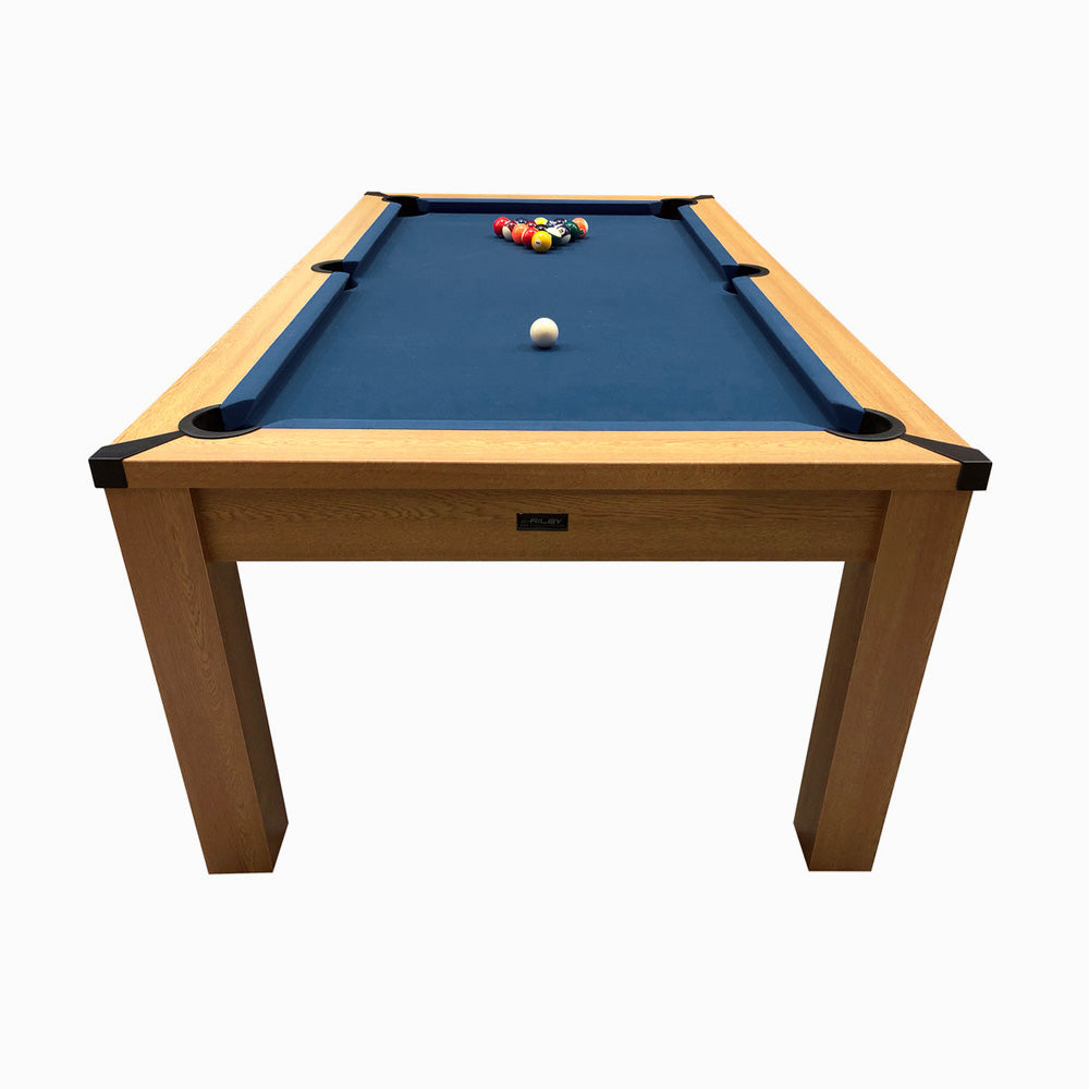 Riley 7ft Semi Pro American Pool Table - Oak with Blue Cloth - Metal Frame - Free Table Tennis/Dining Top