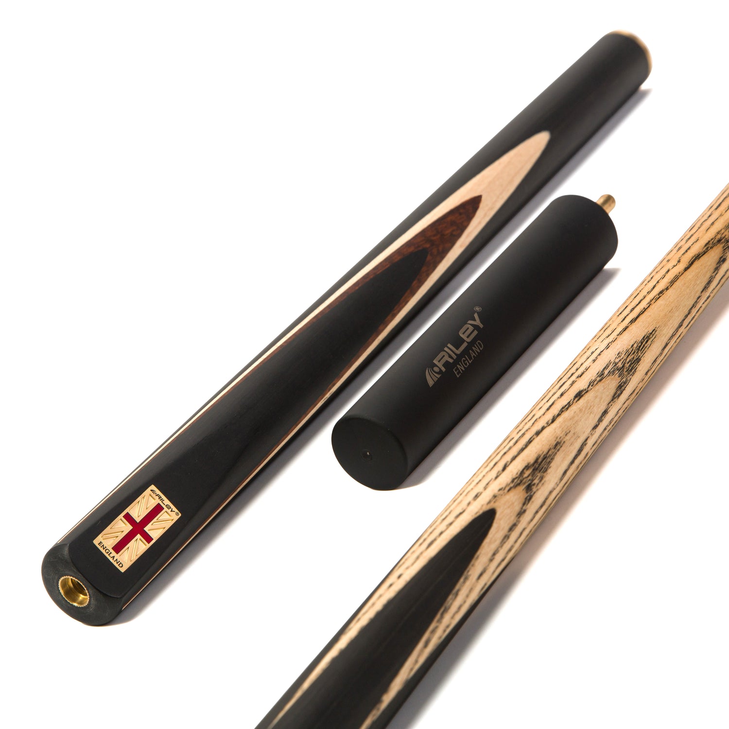 Riley England 3 Piece English Pool Cue - 3/4 Cut Cue - 9mm Tip - 145cm - Black/ Snake Wood/ Ash