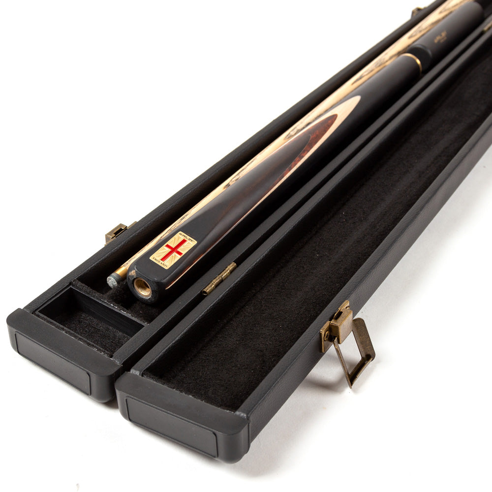 Riley England Series Snooker Cue - Including high quality hand spliced Layered Ebonised Black Wood butt section and beautiful exotic wood front splice and contrasting genuine wood veneer. Complete with matching 6" Mini Butt and Riley deluxe cue case.