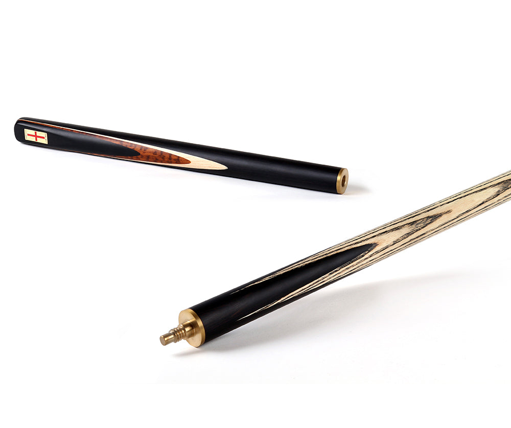 Riley England 3 Piece Snooker Cue - 3/4 Cut Cue - Layered Ebonised Black Wood Butt - 9.5mm Tip - 145cm - Black/ Dark Wood/ Maple